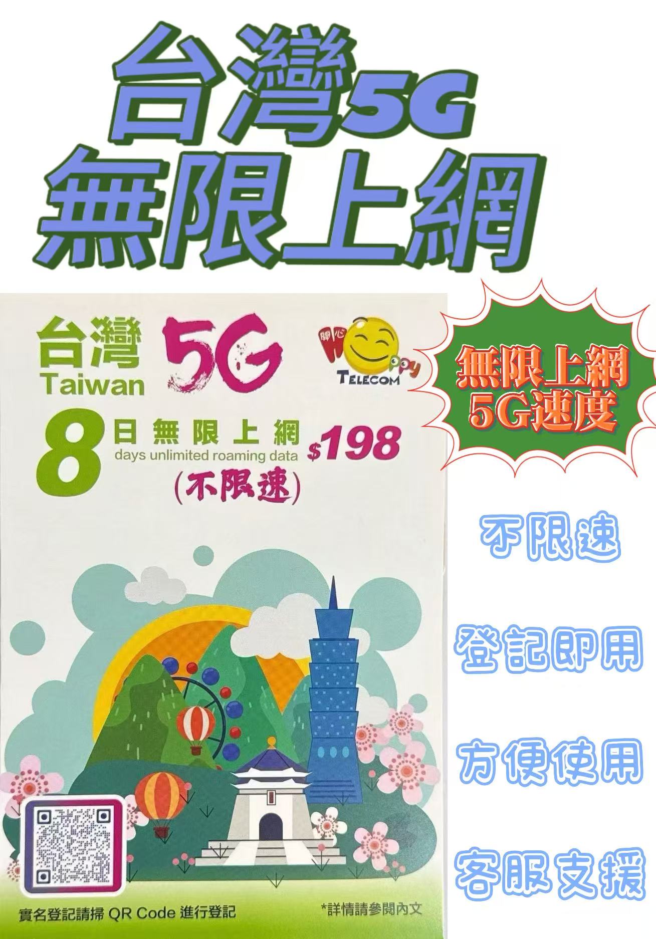 中華電信 - 台灣 真•無限上網【8日全程 5G不限速】極高速 無限數據卡 上網卡 電話卡 旅行電話咭 Data Sim咭