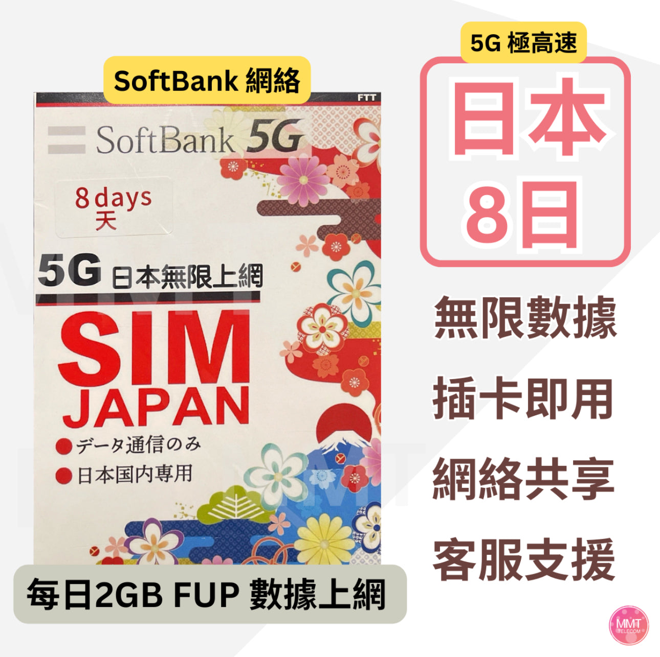 Softbank-日本卡原生卡[8日2GB/日FUP]日本卡5G/4G日本極高速 日本無限數據卡 日本上網卡 日本電話卡 日本旅遊電話卡DATA 日本sim卡