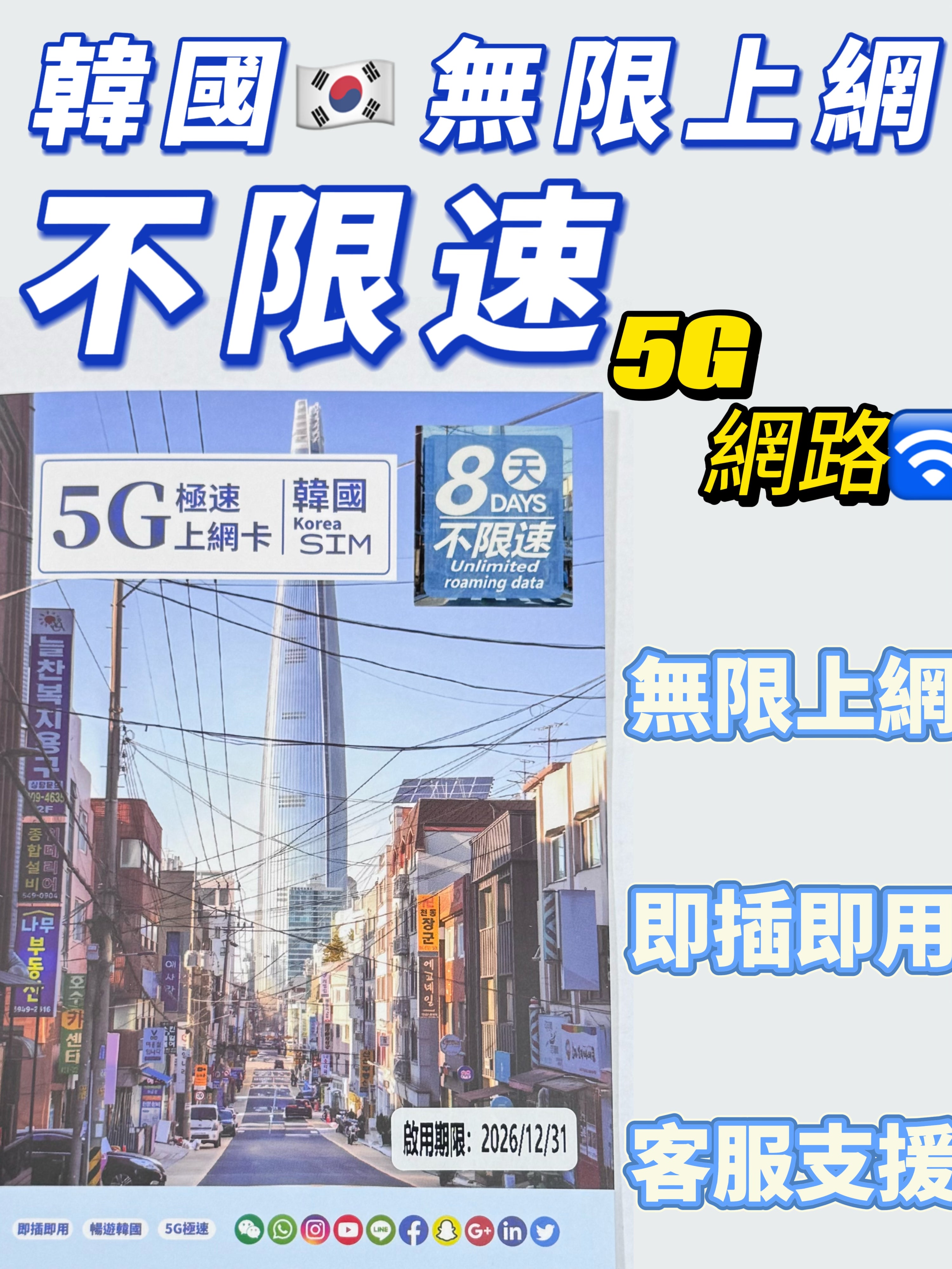 GlocalMe - 韓國/南韓 真•無限上網【8日全程 5G不限速】極高速 無限數據卡 上網卡 電話卡 旅行電話咭 Data Sim咭