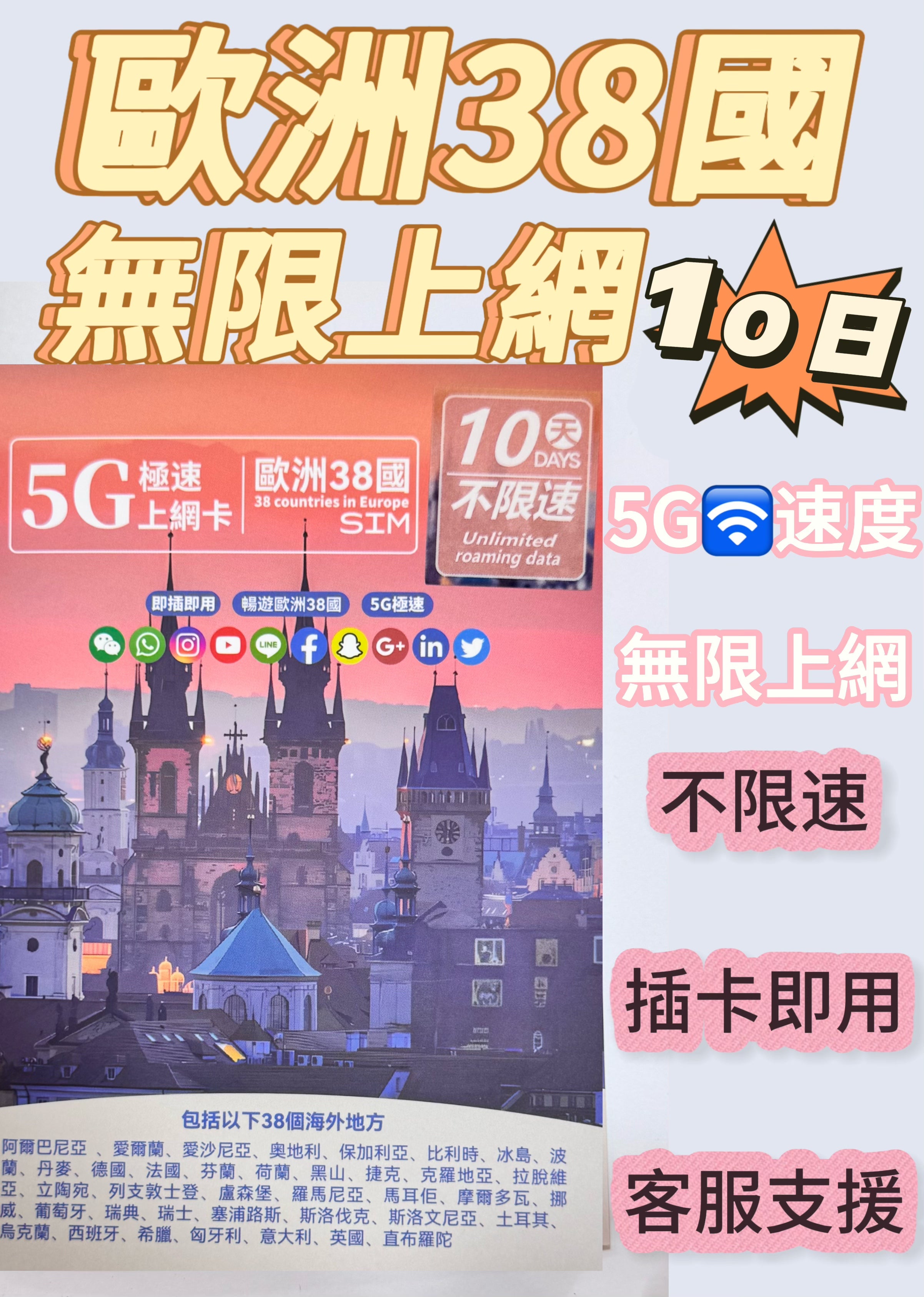 4.上網速度(5G/4G) 全程高速上網,不限速